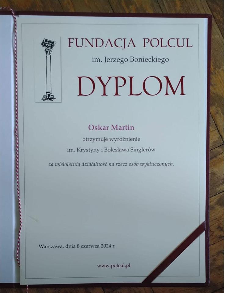 Zdjecie dyplomu Fundacji POLCUL